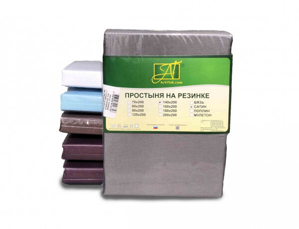 Простыня Альвитек сатин на резинке, 140х200+25, стальной