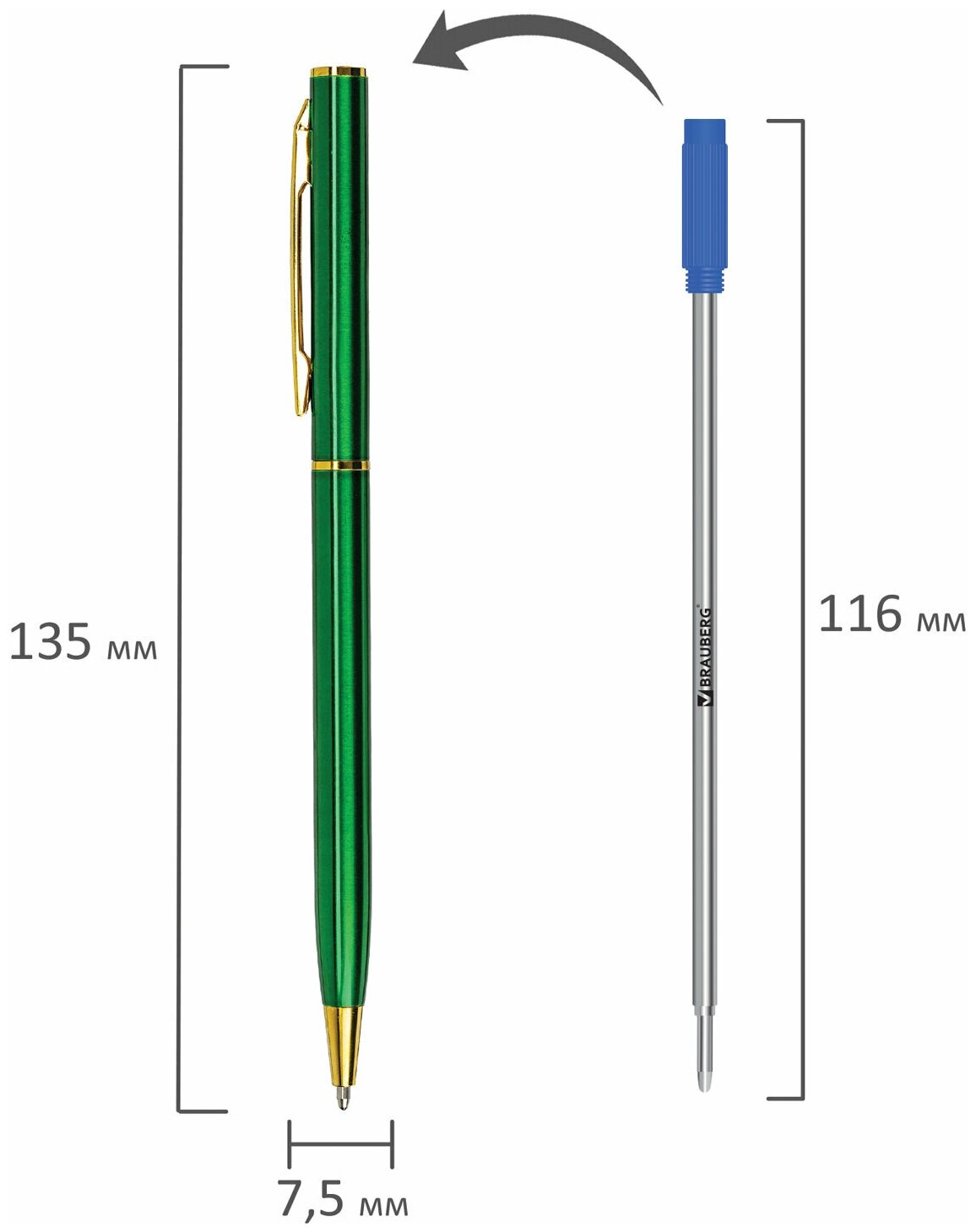 СохранитьРучка подарочная шариковая BRAUBERG "Slim Green", корпус зеленый, узел 1 мм, линия письма 0,7 мм, синяя, 141404 интересное: