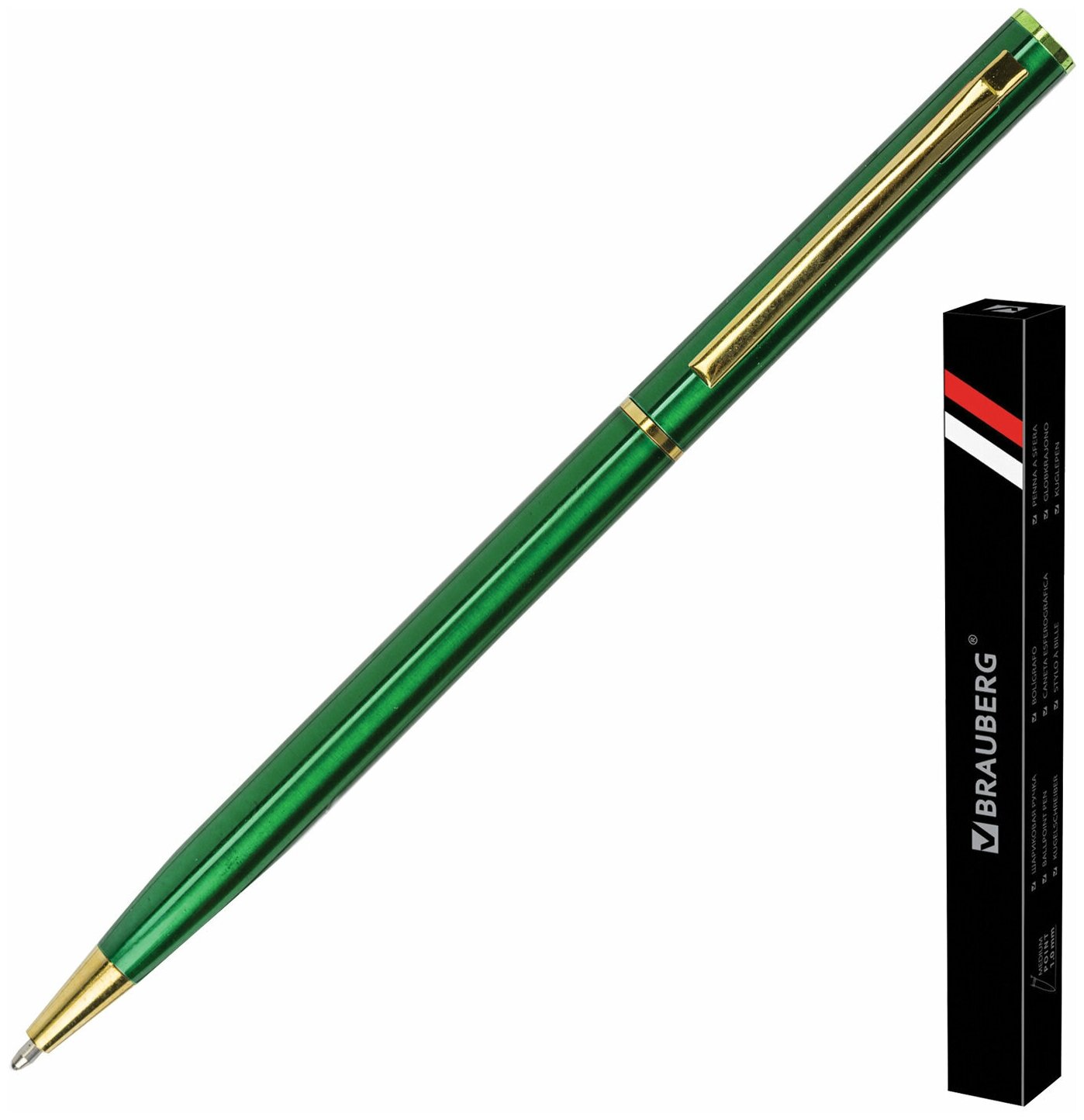 Купить Ручка подарочная шариковая BRAUBERG "Slim Green", корпус зеленый, узел 1 мм, линия письма 0,7 мм, синяя, 141404