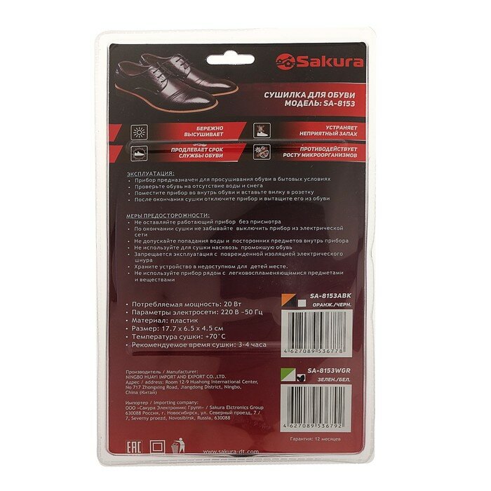 Ниже Вы можете прочитать отзывы на Сушилка для обуви Sakura SA-8153WGR, 60-75°С, арома-пластик, антибакт., зелено-белый, ознакомится с подробными характеристиками, посмотреть интересные обзоры и фотографии на Сушилка для обуви Sakura SA-8153WGR, 60-75°С, арома-пластик, антибакт., зелено-белый.