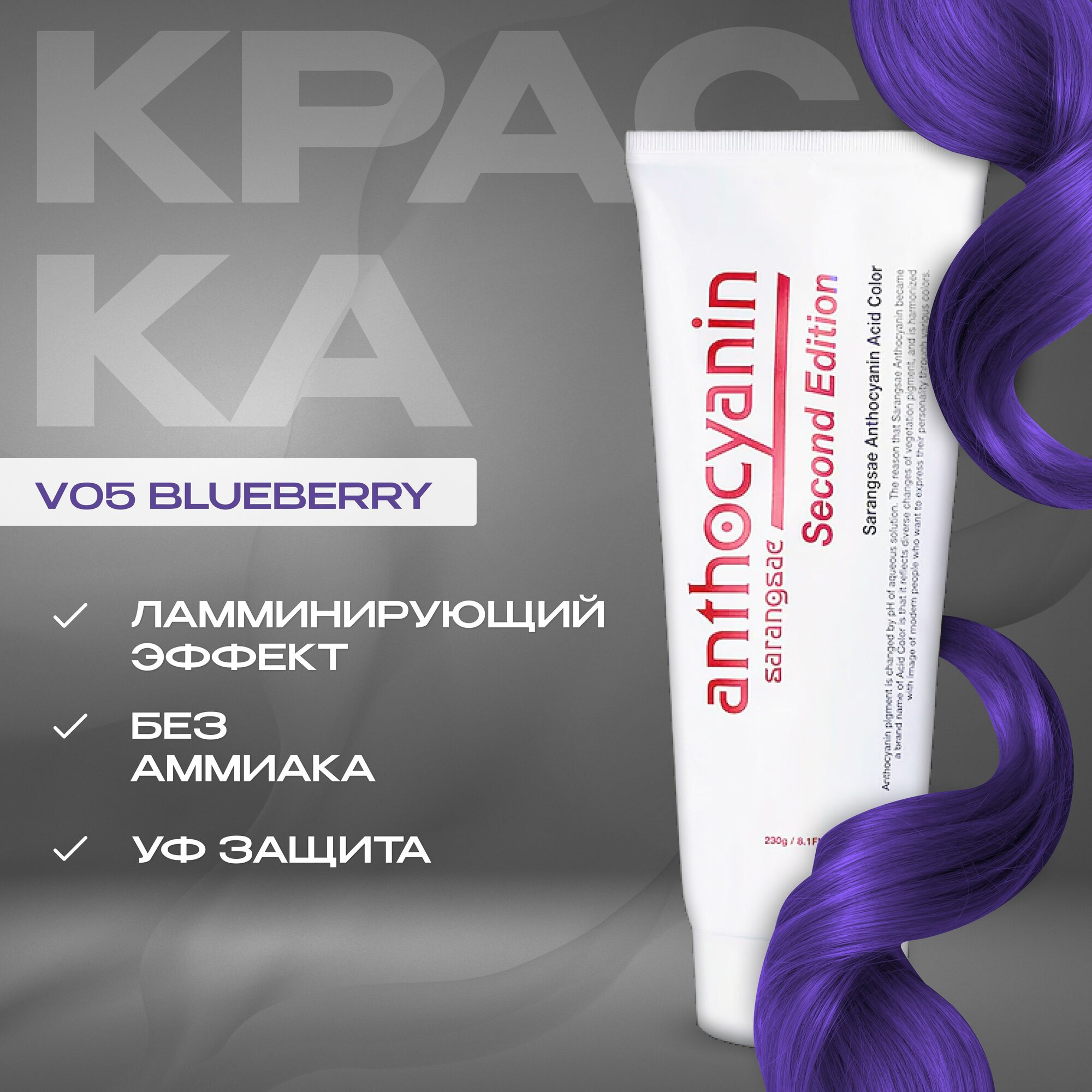 Anthocyanin Фиолетовая краска для волос V05 Blueberry 230 мл профессиональная без аммиака ламинирующая