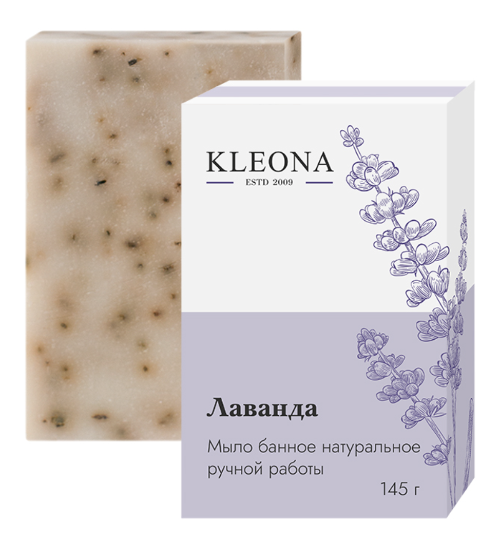 Kleona Натуральное мыло ручной работы банное "Лаванда" смягчающее и увлажняющее, 145 г