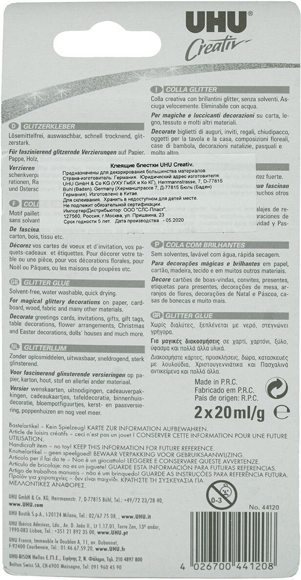 Ниже Вы можете прочитать отзывы на Клеящие блестки золото-серебро UHU Creativ Glitter Glue для декора, 2*10 мл, ознакомится с подробными характеристиками, посмотреть интересные обзоры и фотографии на Клеящие блестки золото-серебро UHU Creativ Glitter Glue для декора, 2*10 мл.