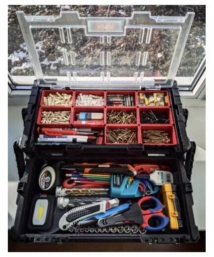 Ящик с органайзером KETER Cantilever (17186819), 42x24x15 см, 18'' , красный/серый
