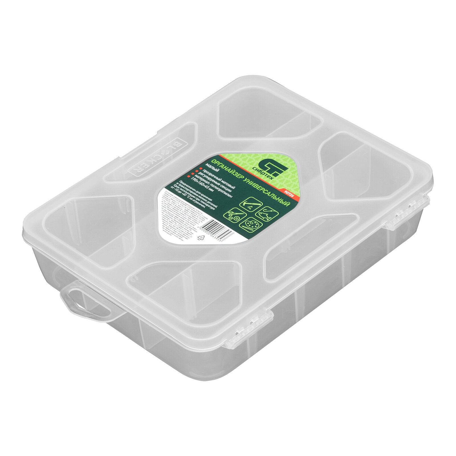 СИБРТЕХ 90726 Органайзер универсальный малый, прозрачный матовый 19x16x4,5 см Сибртех 90726 СИБРТЕХ 90726