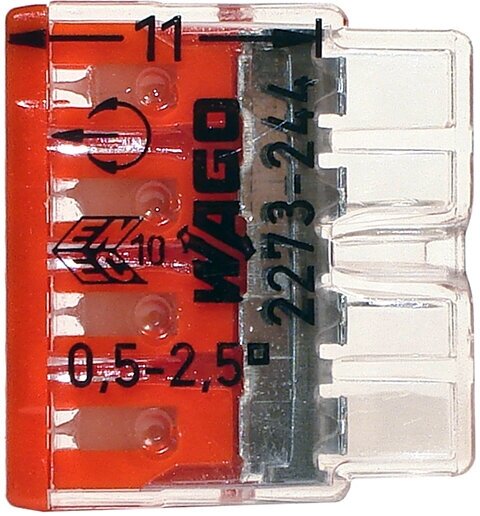 2273-244 Экcпресс-клемма с пастой, 4-проводная до 2,5 мм², WAGO {07-5143} 1 шт