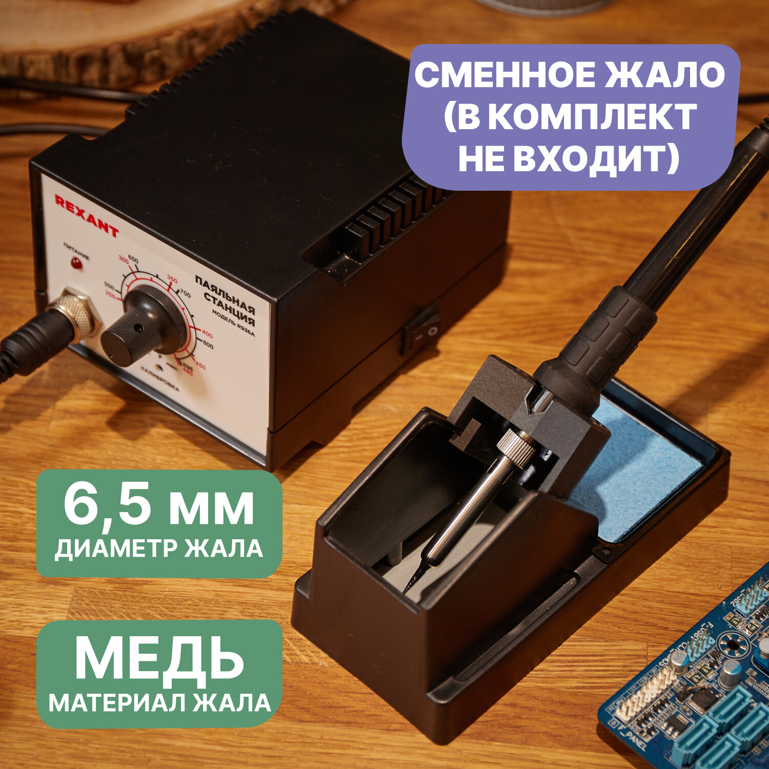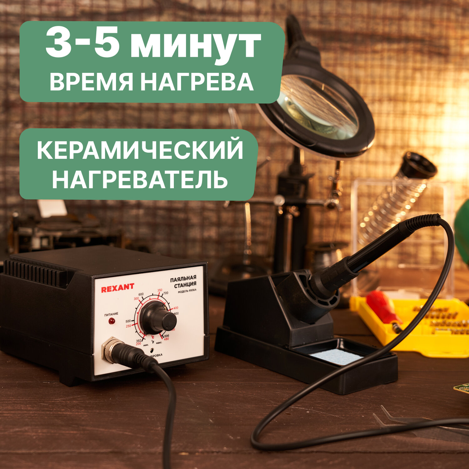 Аналоговая паяльная станция REXANT, паяльник с керамическим нагревателем, 200-480 градусов