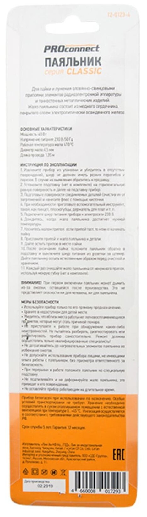 Паяльник , Долговечное Жало, 40 Вт, 230 В, Серия Classic Proconnect 12-0123-4 PROconnect арт. 12-0123-4