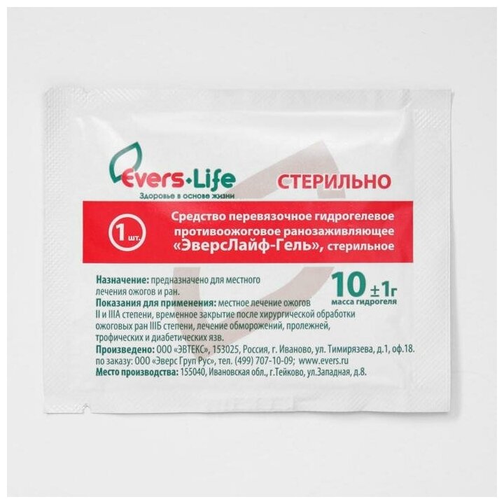 Средство перевязочное гидрогелевое противоожоговое и ранозаживляющее стерильное Эверс Лайф-Гель 10 г 1 шт