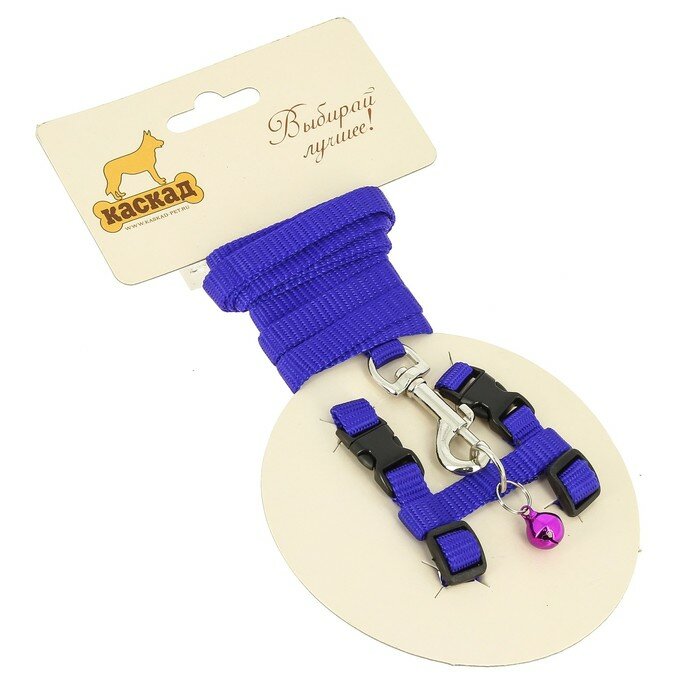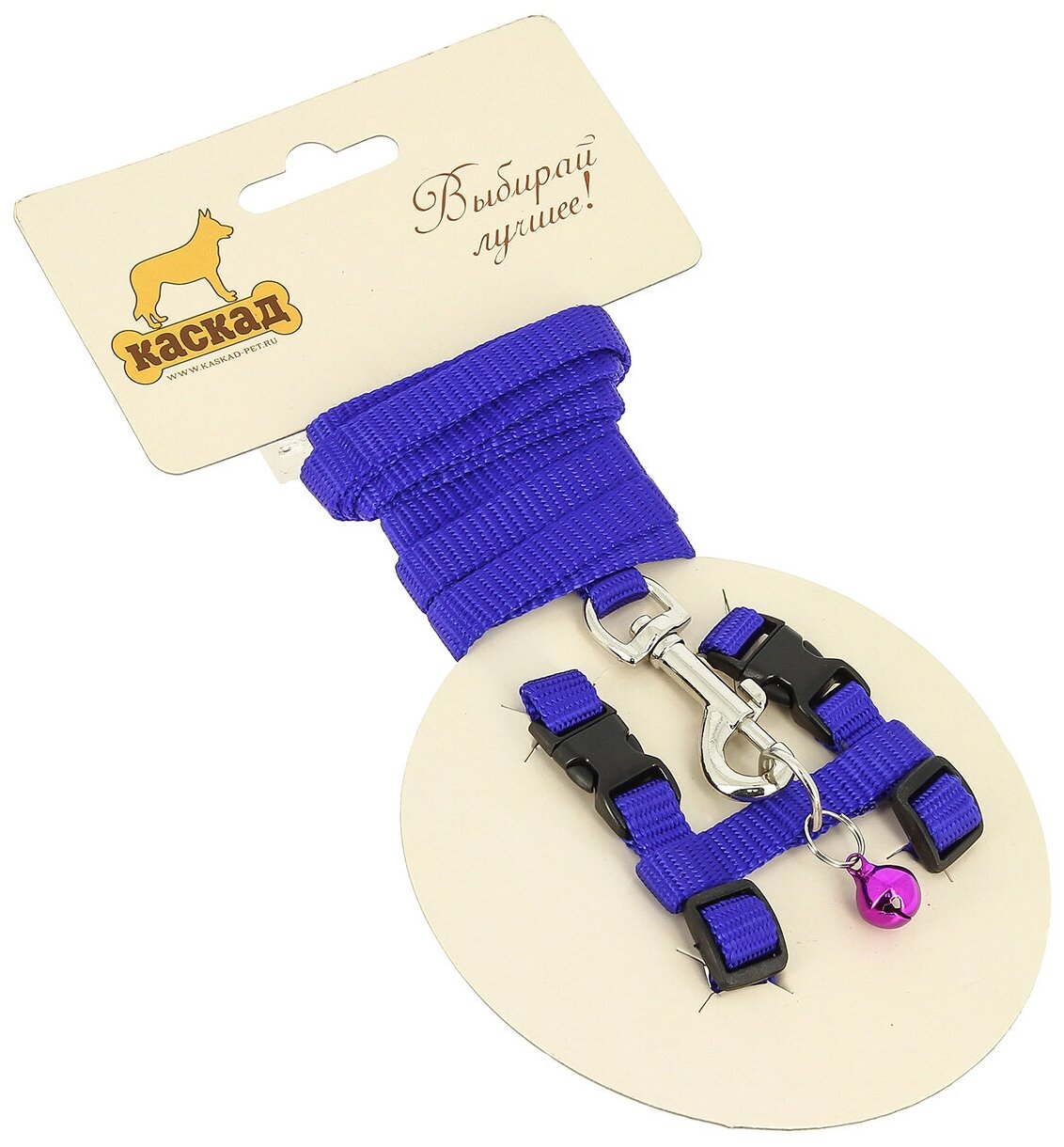 Купить Комплект шлейка с поводком для грызунов Каскад Synthetic нейлон с бубенчиком синий 10 мм 120 см 15 – 25 см (1 шт)