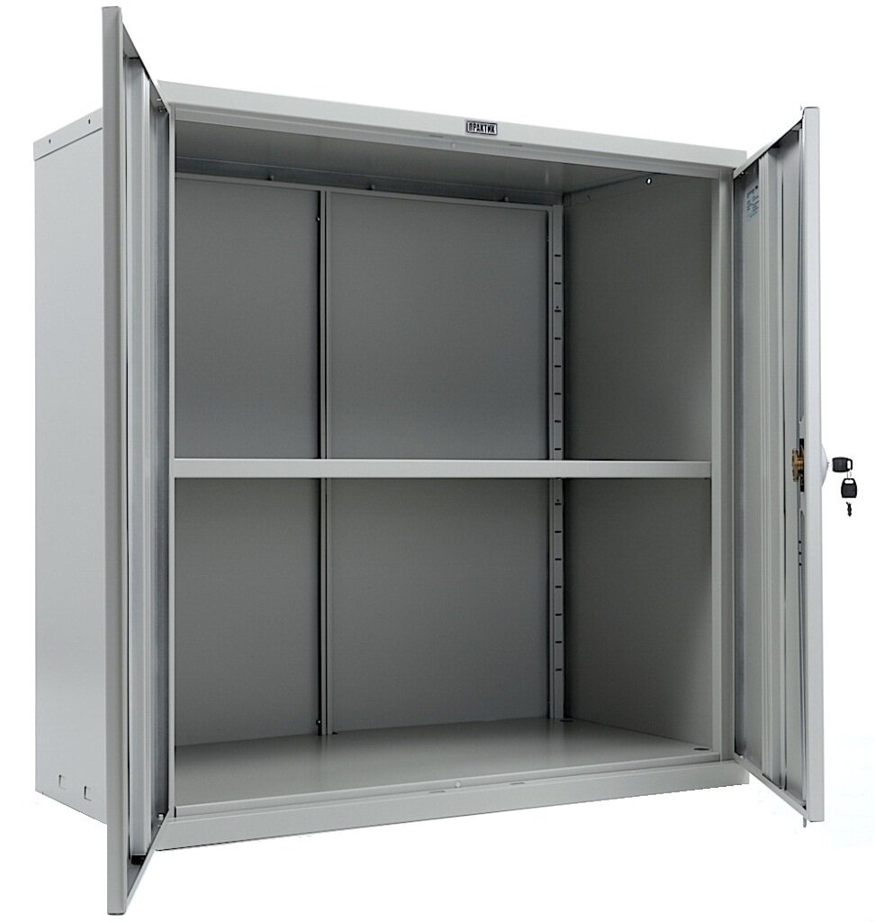 Шкаф офисный металлический для документов практик СВ-11, 2 двери, 1 полка, с ключевым замком, ВхШхГ: 930х850х400 мм