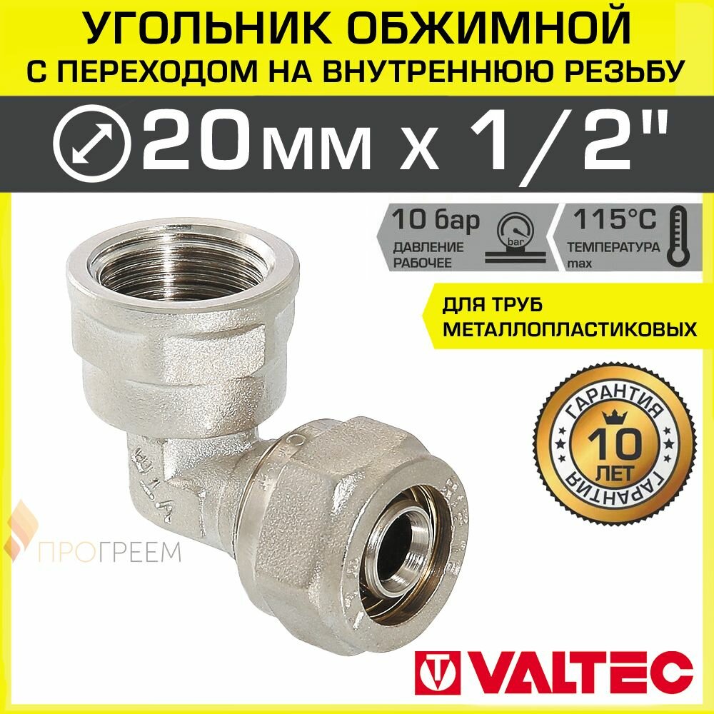 Угольник обжимной с переходом на внутреннюю резьбу 20х1/2" VALTEC VTm.352.N.002004
