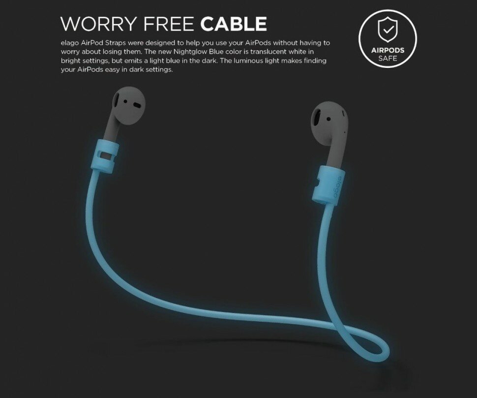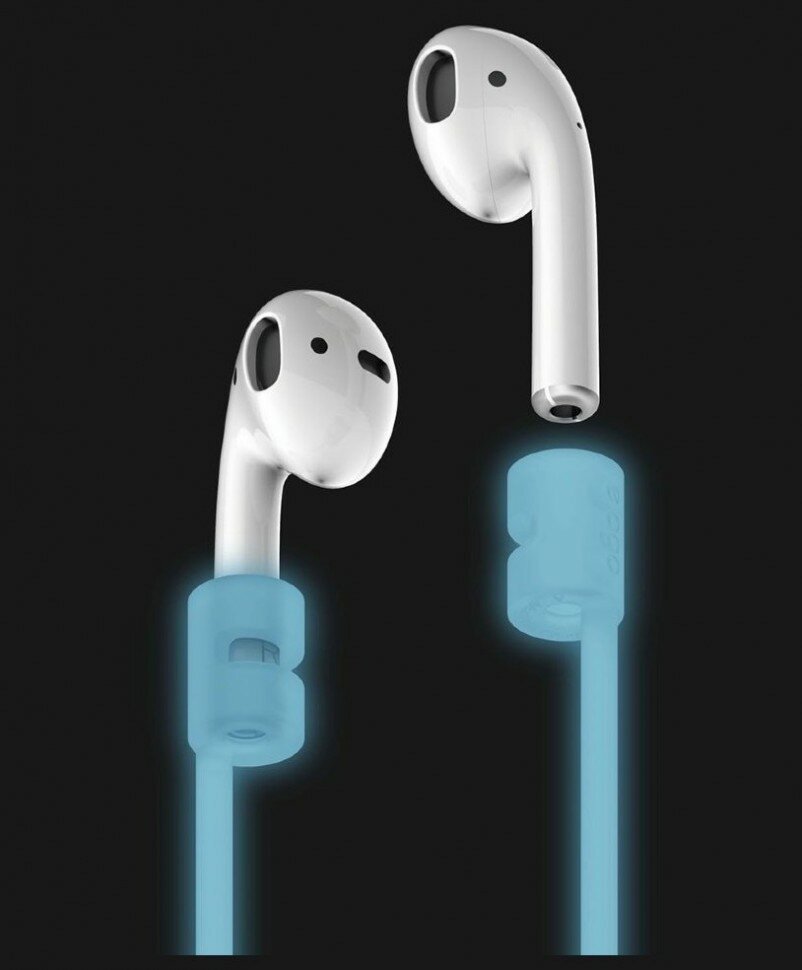 Ремешок Elago AirPods Strap для AirPods, цвет Белый с синим свечением в темноте (Nightglow blue) (ESTR-AP-LUBL)