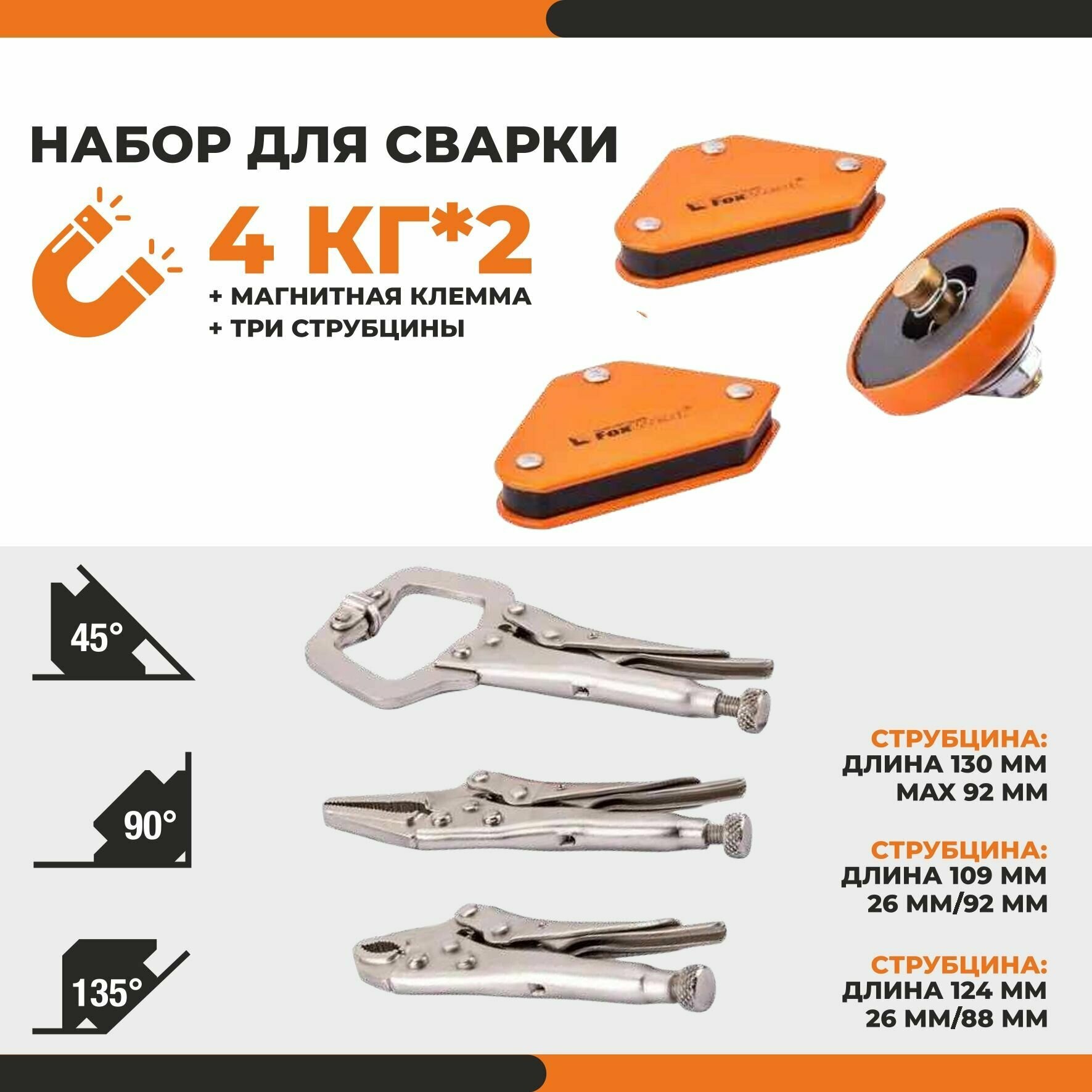 Набор приспособлений для сварки FoxWeld Multi-6: 2 магнит; 1 магнитная клемма заземления; 3 струбцины