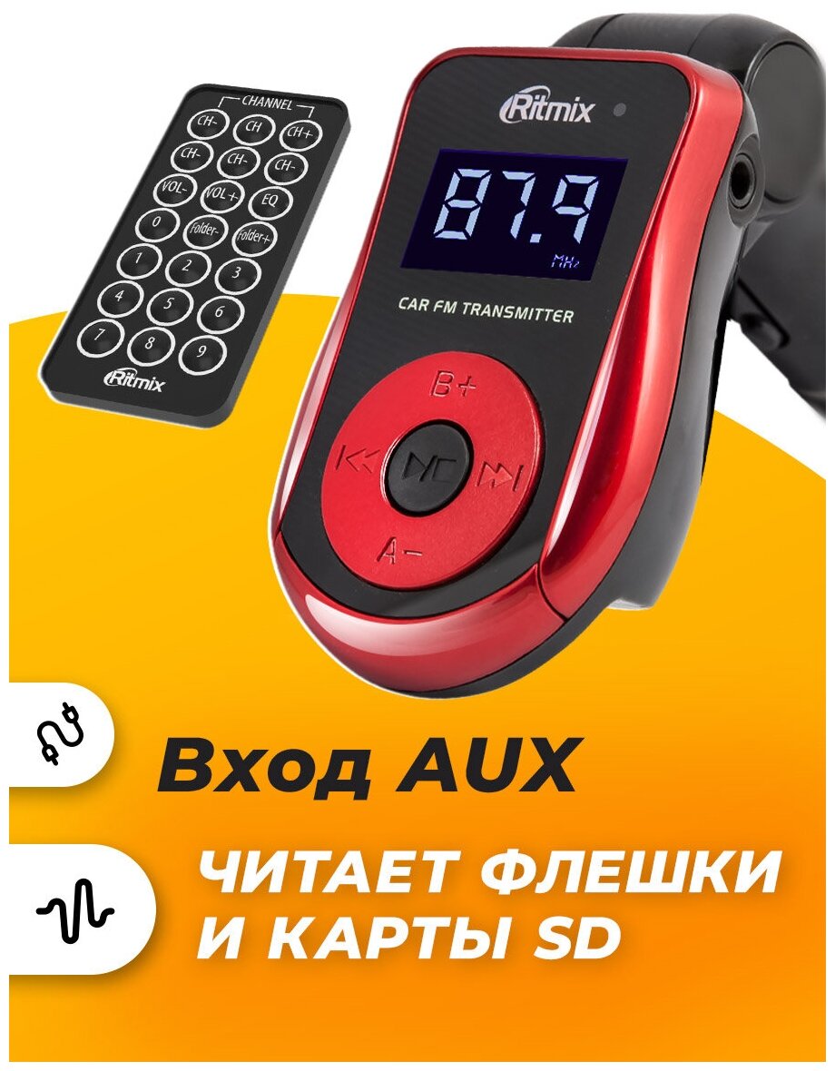 Купить Автомобильный FM-модулятор Ritmix FMT-A720 красный SD USB PDU (15116561)