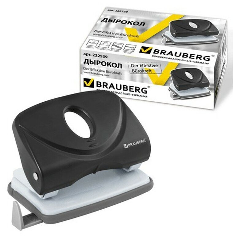 Дырокол BRAUBERG "Original", до 20 листов, черный, 222539 В комплекте: 1шт.