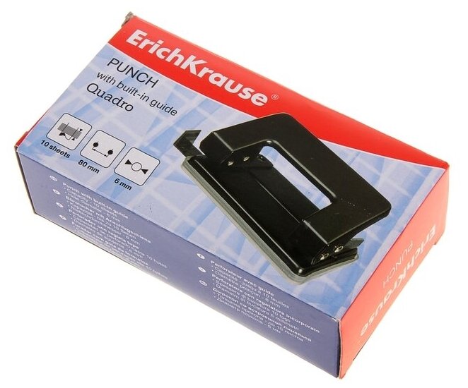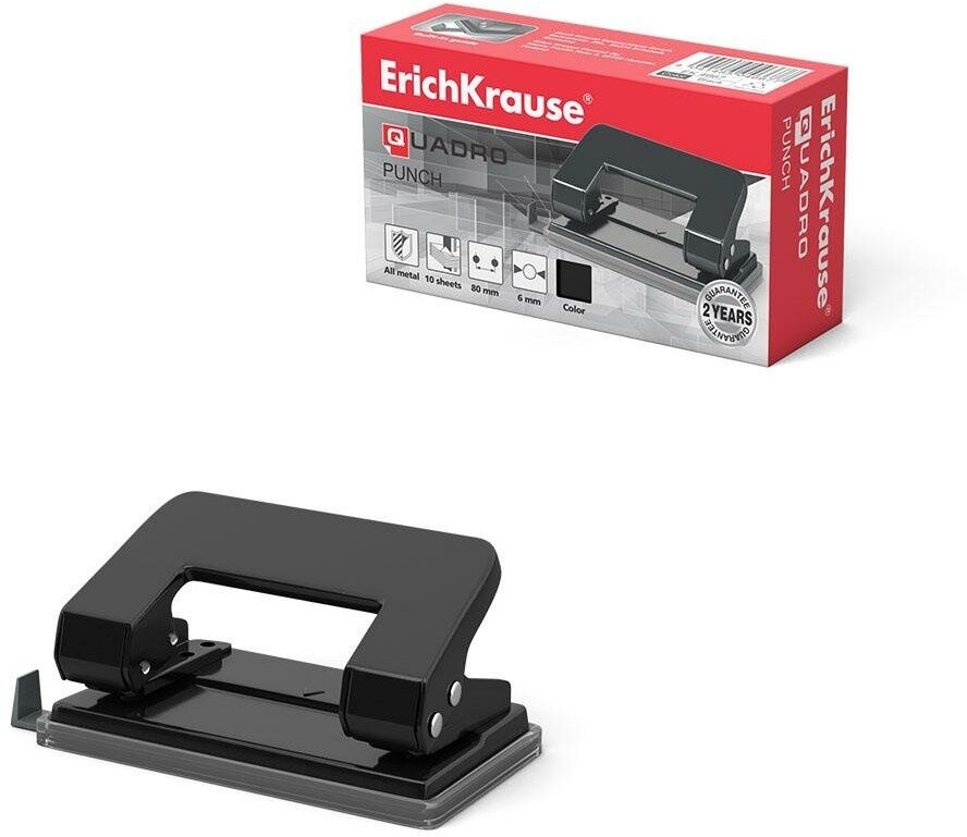ErichKrause Дырокол ErichKrause Quadro, до 10 листов, диаметр прокола 6 мм, расстояние между проколами 80 мм, чёрный