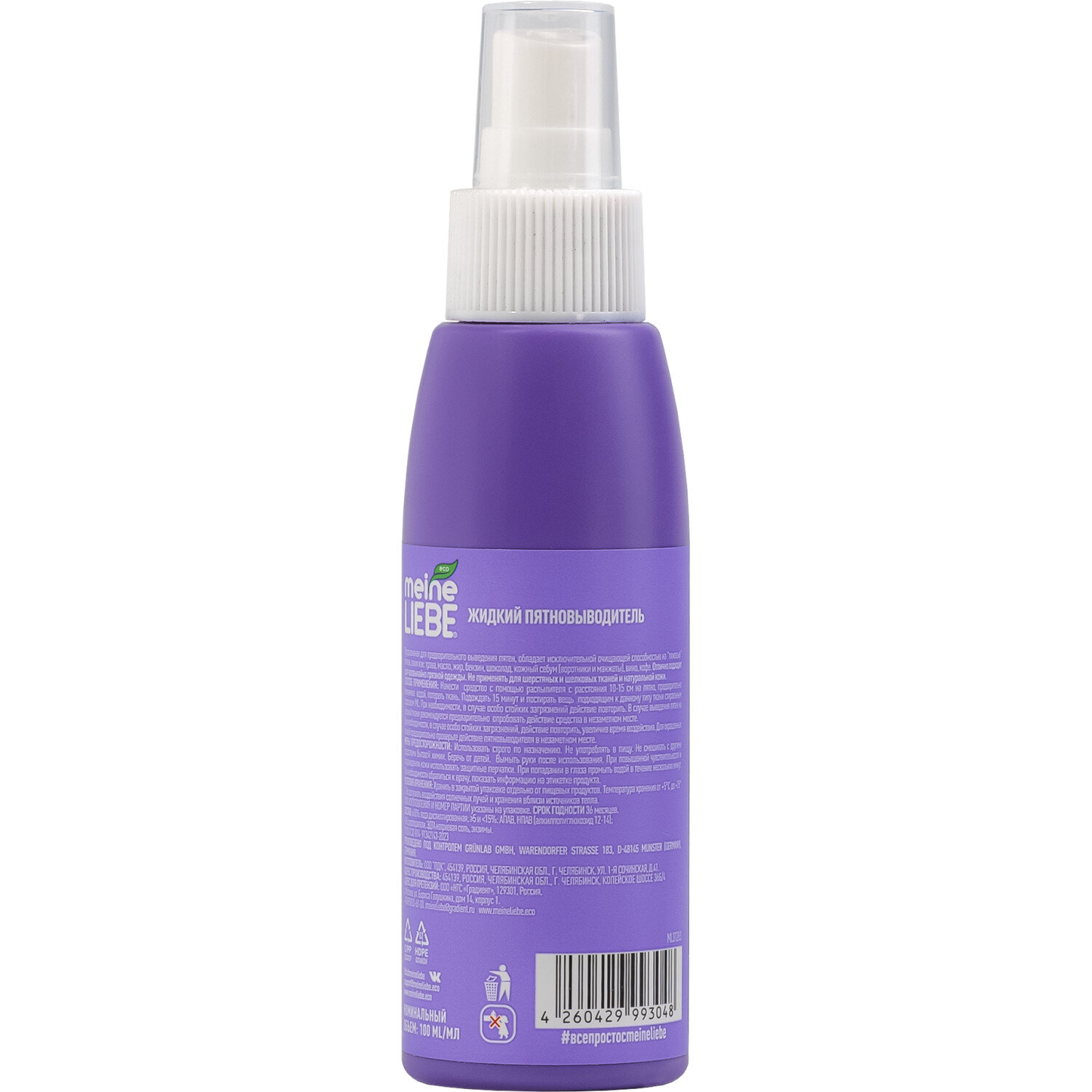 Жидкий пятновыводитель-спрей Meine Liebe PREMIUM без хлора, экологичный, 100 мл