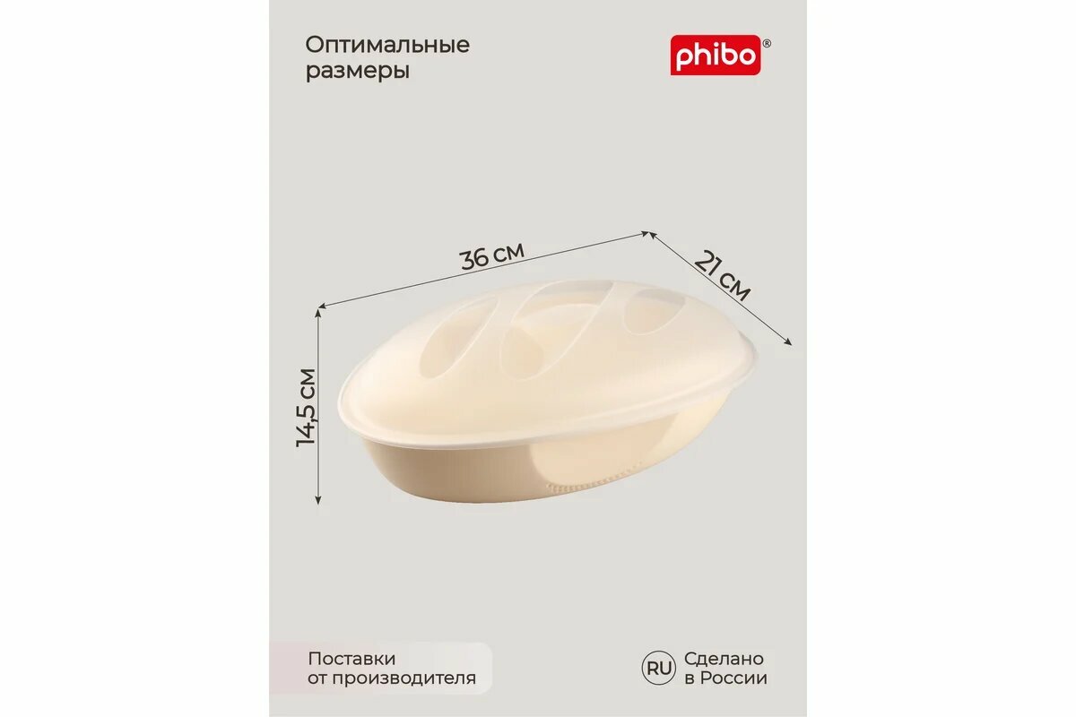 Хлебница "Phibo", пластиковая, 360х210х145 мм, бежевый, прозрачный