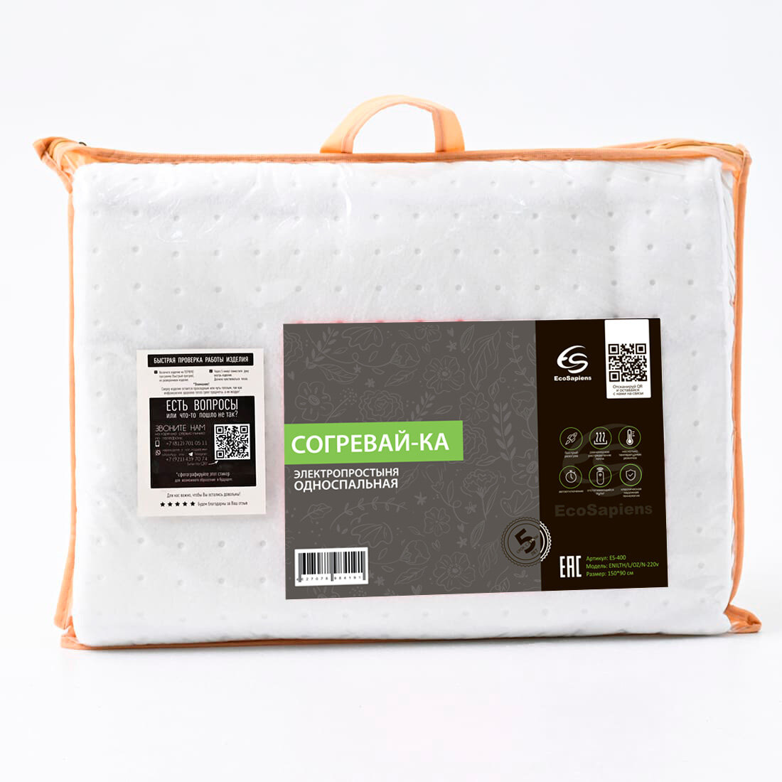 EcoSapiens Электропростынь EcoSapiens Согревай-ка 150х90 см, EcoSapiens