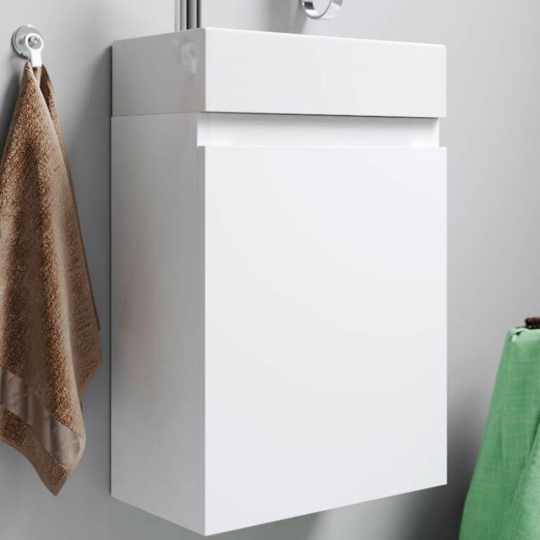 Подвесная тумба Aqwella в белом глянцевом цвете с одной дверью (петли справа) (раковина приобретается отдельно, артикул T1.04.04D)