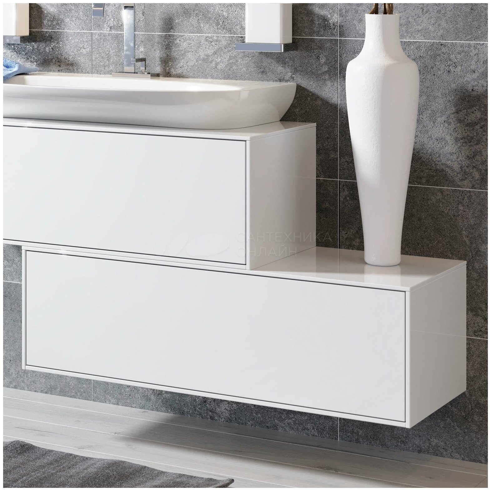 | Плюсы: | удобная, вместительная и изящная подвесная тумба |
