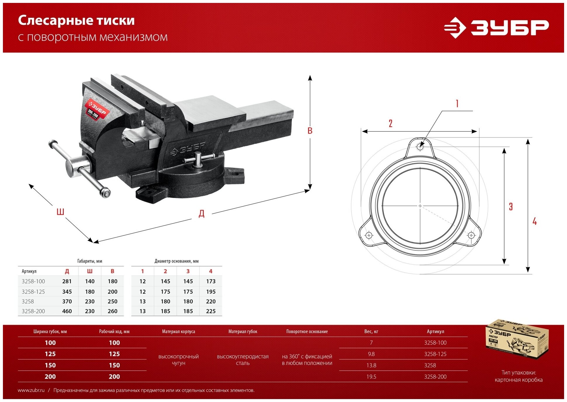 Тиски слесарные Зубр 3258_z01 интересное: