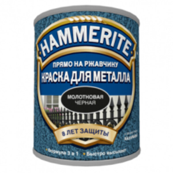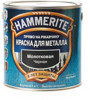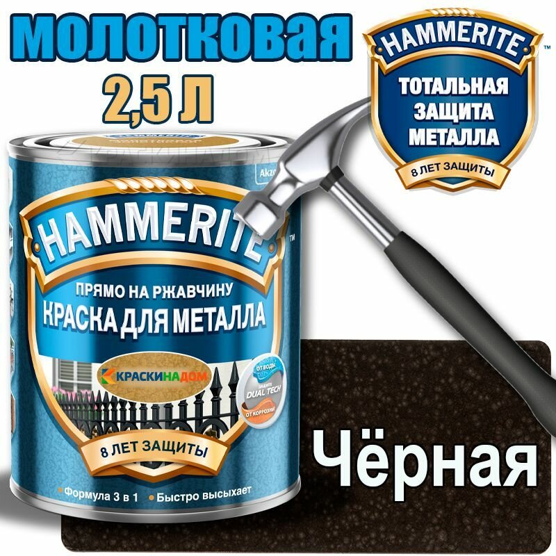 Грунт-эмаль по ржавчине 3 в 1 Hammerite молотковая (2,5 л) черная Турция