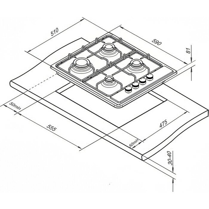 Газовая варочная поверхность 1T1 BGM341 11 X DARINA