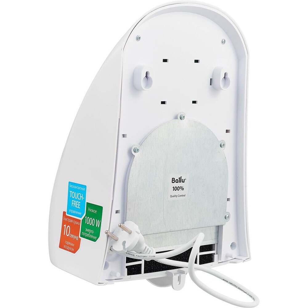 Сушилка для рук BALLU BAHD-1000AS, 1000Вт, скорость потока 30 м/с, пластик, белая