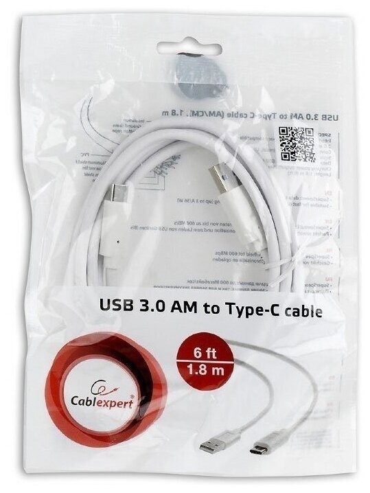 Купить Cablexpert Кабель USB Ccp-usb3-amcm-6-w USB3.0 Am/usb Type-C 1.8м белый пакет