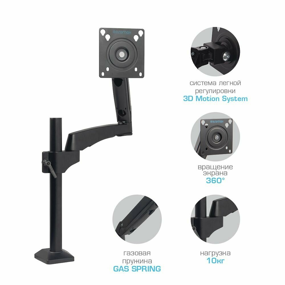 Кронштейн для монитора Kromax OFFICE-11, настольный, поворот и наклон, черный (20226)