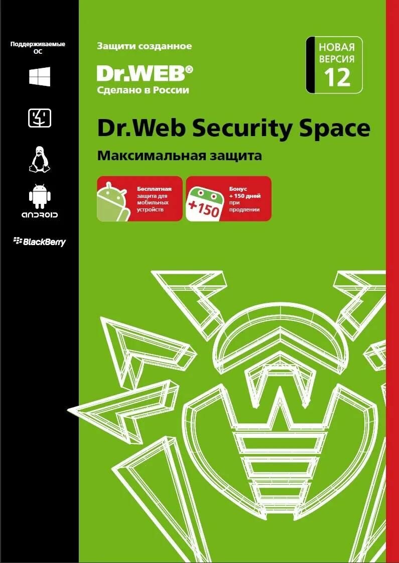 Антивирус Dr.Web Security Space 1 ПК 1 год Новая лицензия BOX [bhw-b-12m-1-a3]