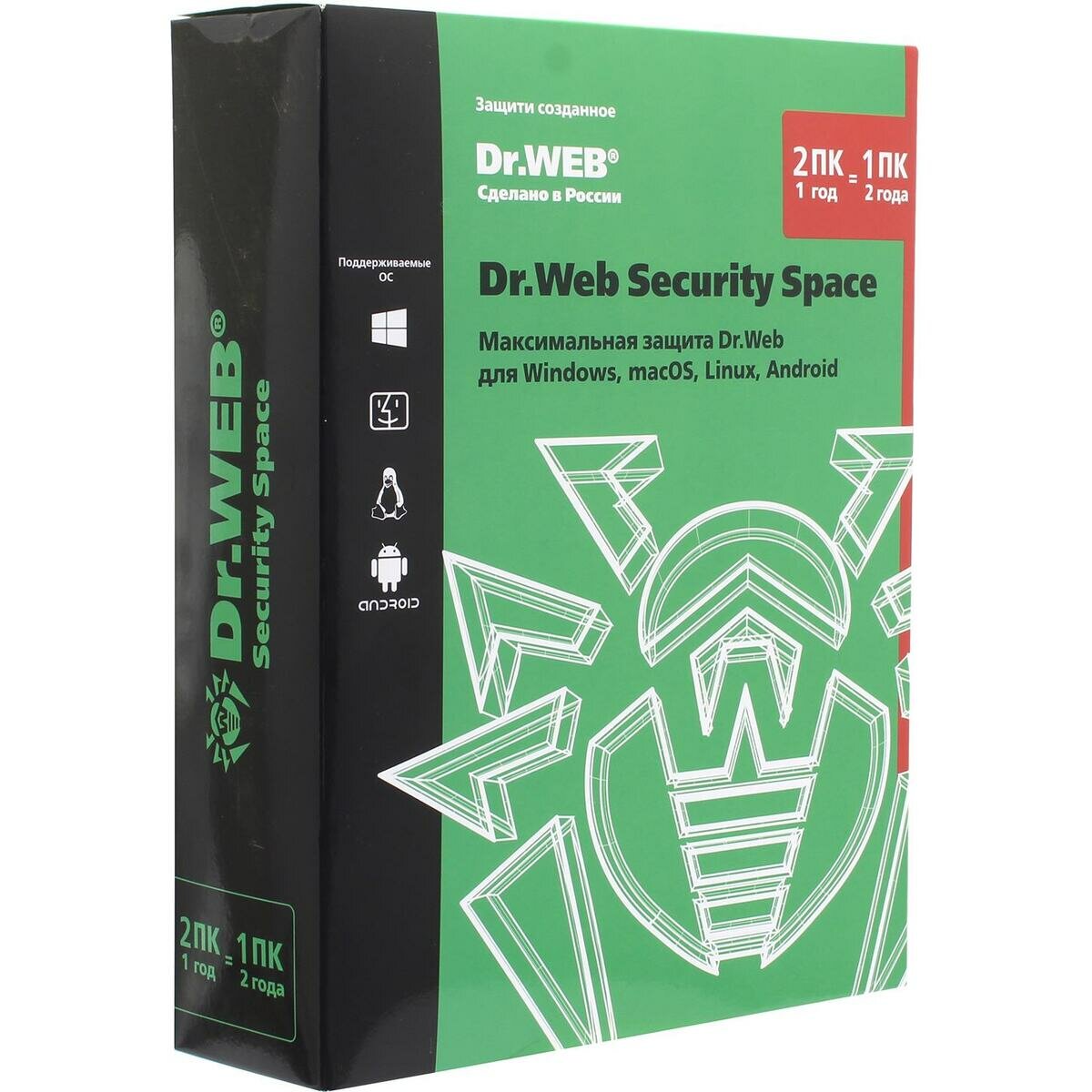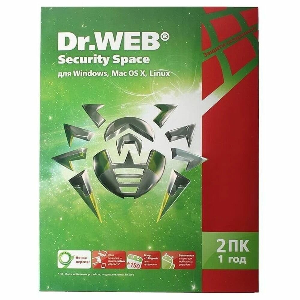 Dr.Web Security Space, коробочная версия с диском, русский, количество пользователей/устройств: 2 ус., 24 мес.