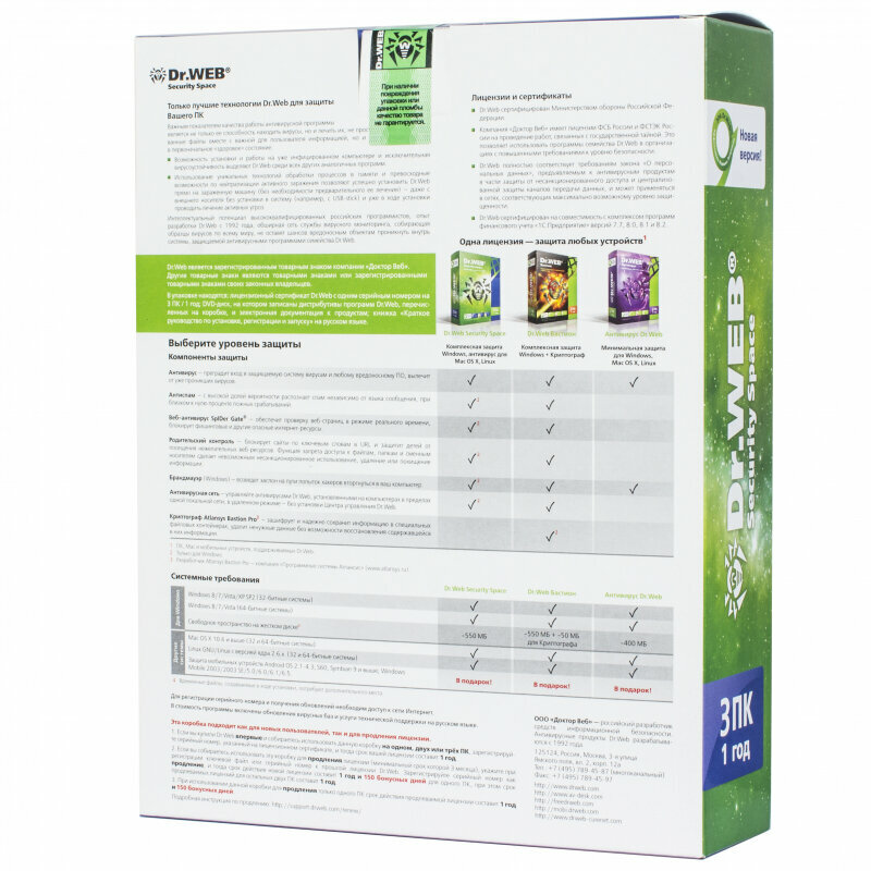 Антивирус Dr.Web ПО DR.Web Security Space КЗ 3ПК 1г (BHW-B-12M-3-A3) [bhw-b-12m-3-a3/ahw-b-12m-3-a2]