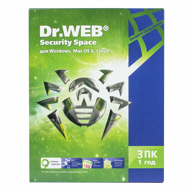 Dr.Web Security Space, новая лицензия, 3 ПК, 12 мес. (LHW-BK-12M-3-A3)