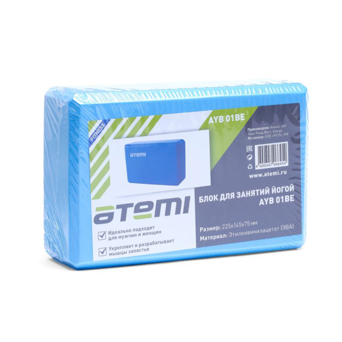 Блок для йоги Atemi, AYB01BE, 225х145х75, голубой, 1789573