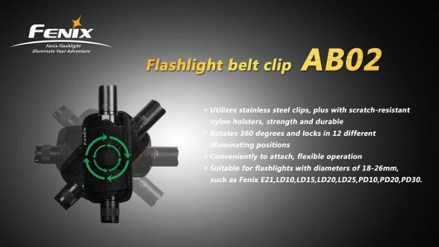 | Дополнительная информация | для крепления на одежде, рюкзаке или поясном ремне, совместимо с фонарями Fenix серий E, LD, PD, TK, UC |
