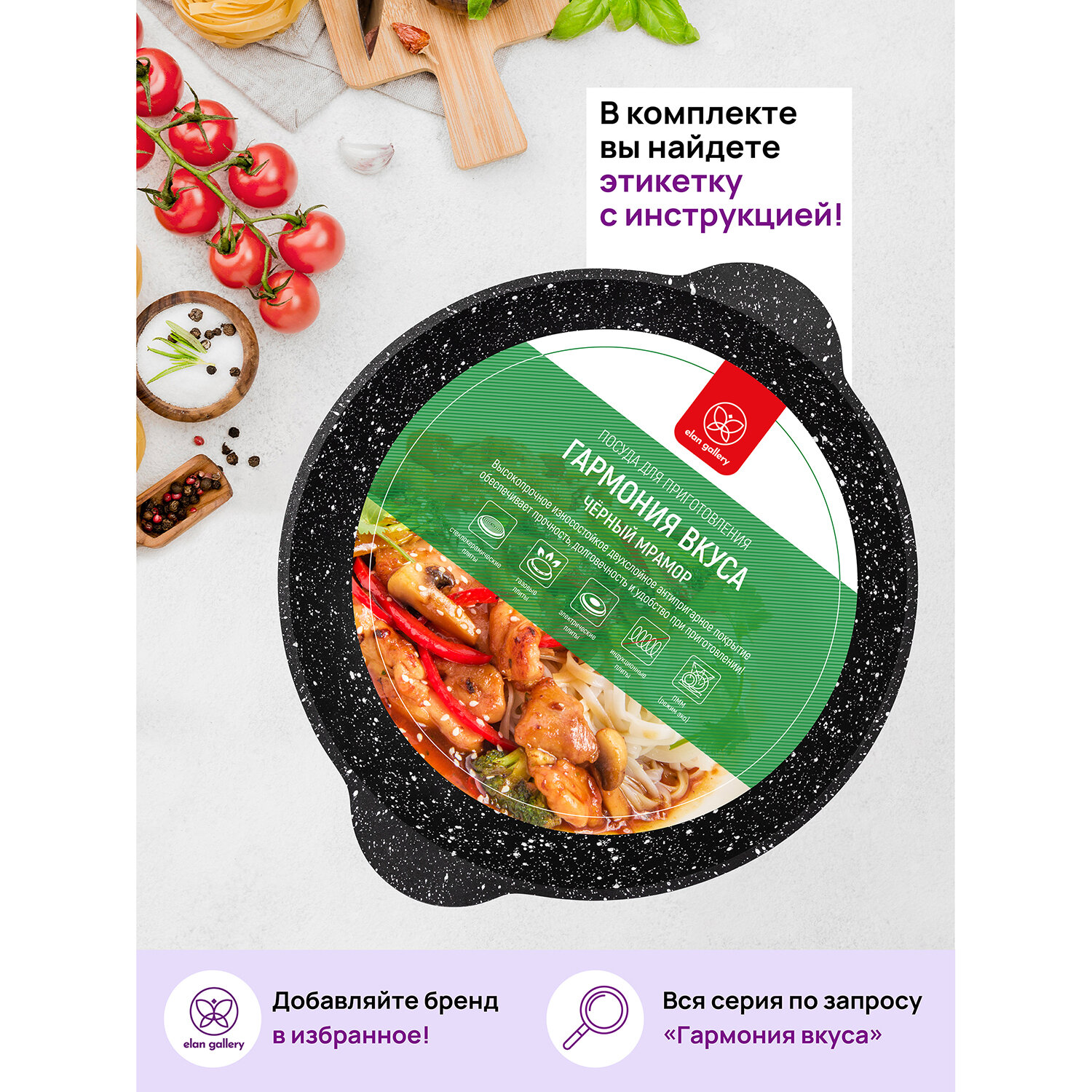 Сковорода ВОК 3 л 28 см Elan Gallery гармония вкуса Черный мрамор с крышкой D28
