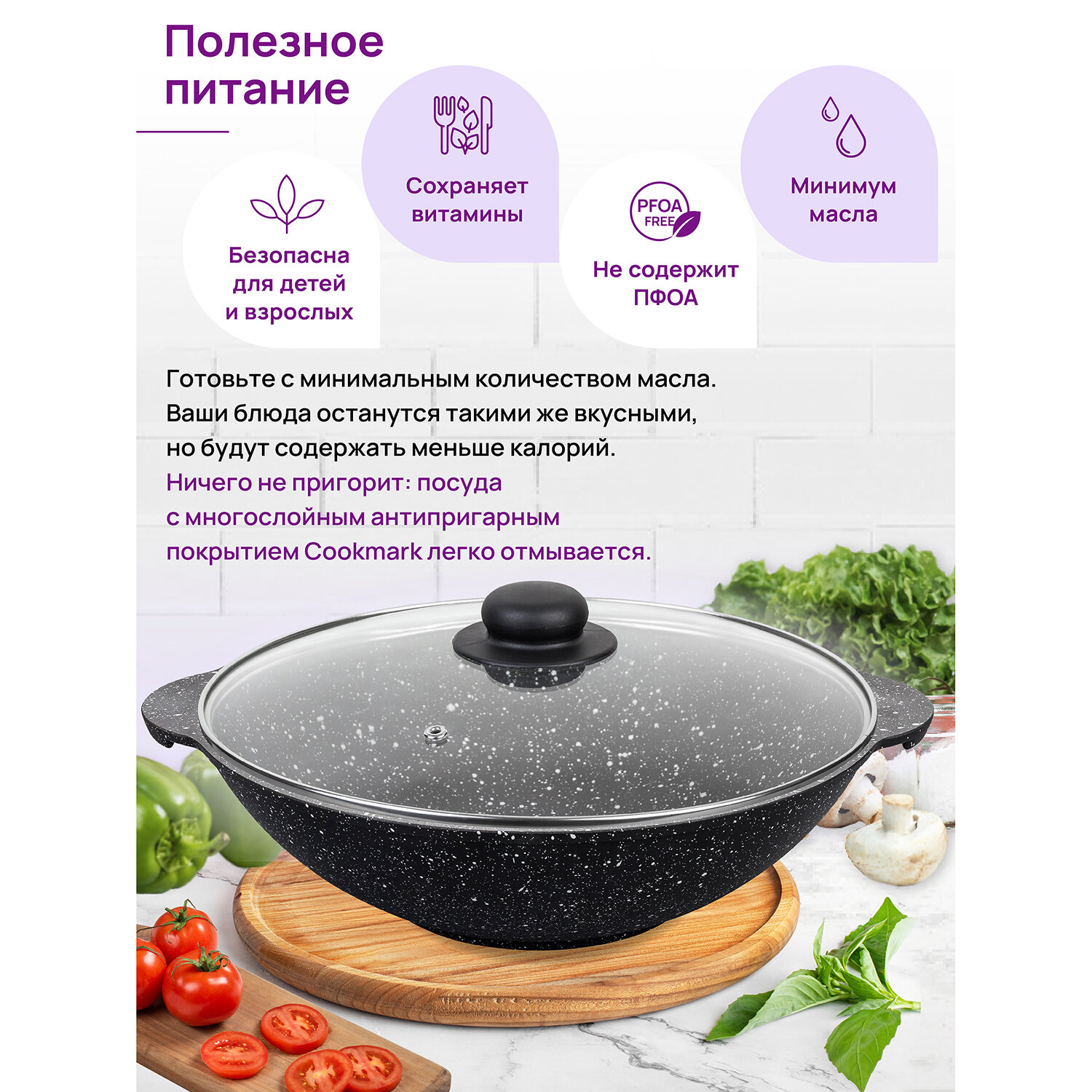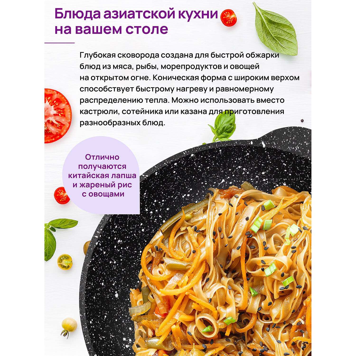 Купить Сковорода ВОК 28 см 3 л гармония вкуса Черный мрамор с крышкой D28