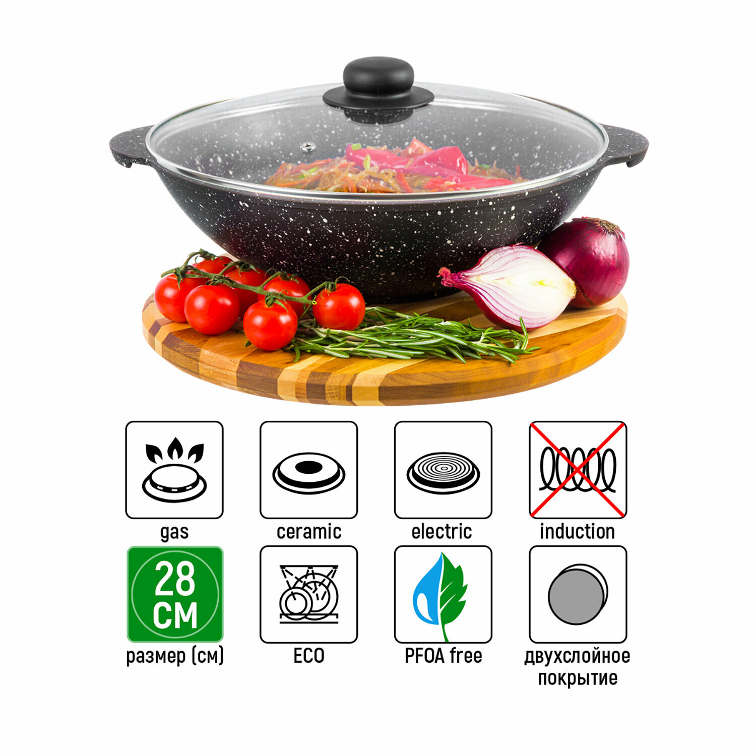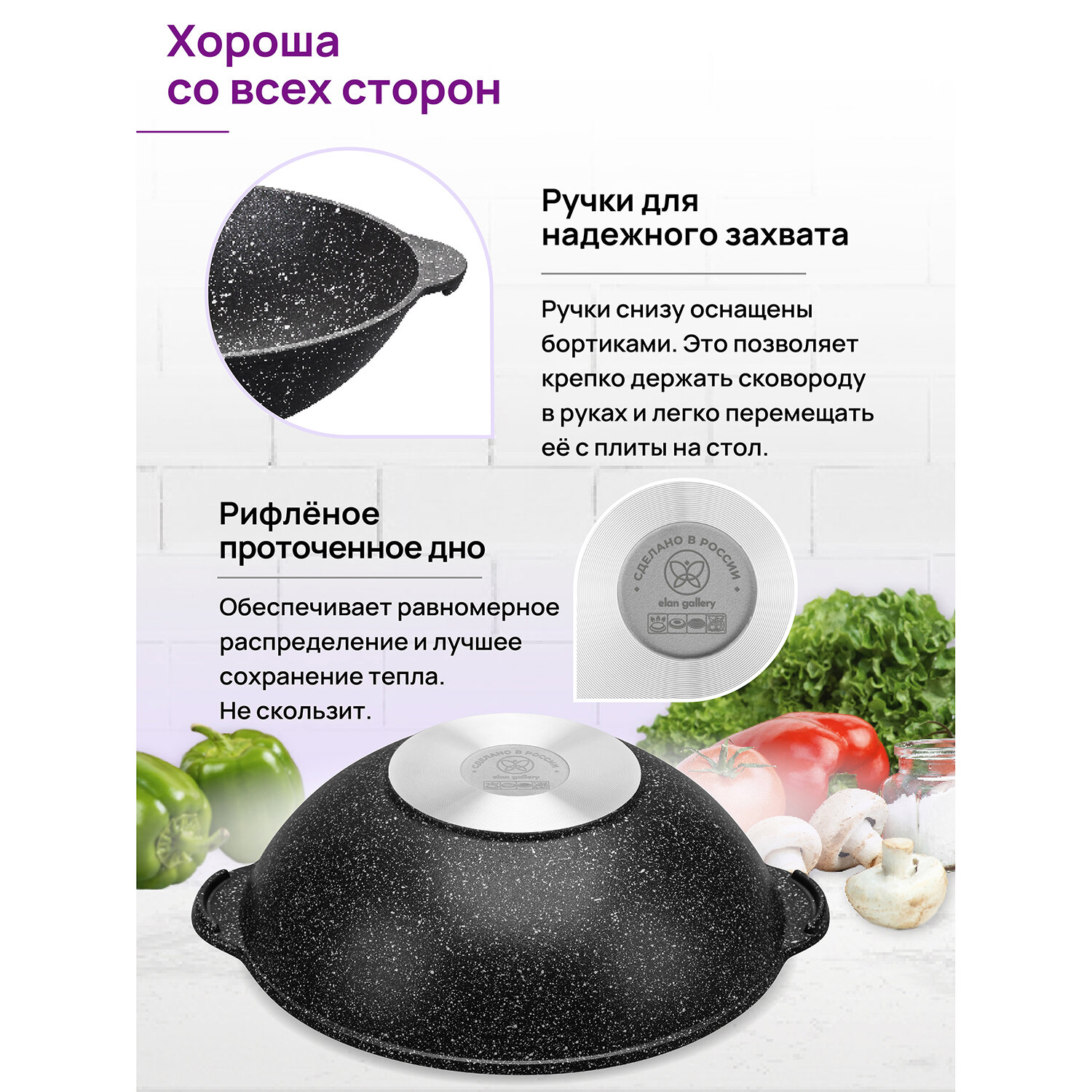 Сковорода Elan Gallery ВОК 28 см гармония вкуса "Черный Оникс" 33,5*29,5*13,5 см, 3 л