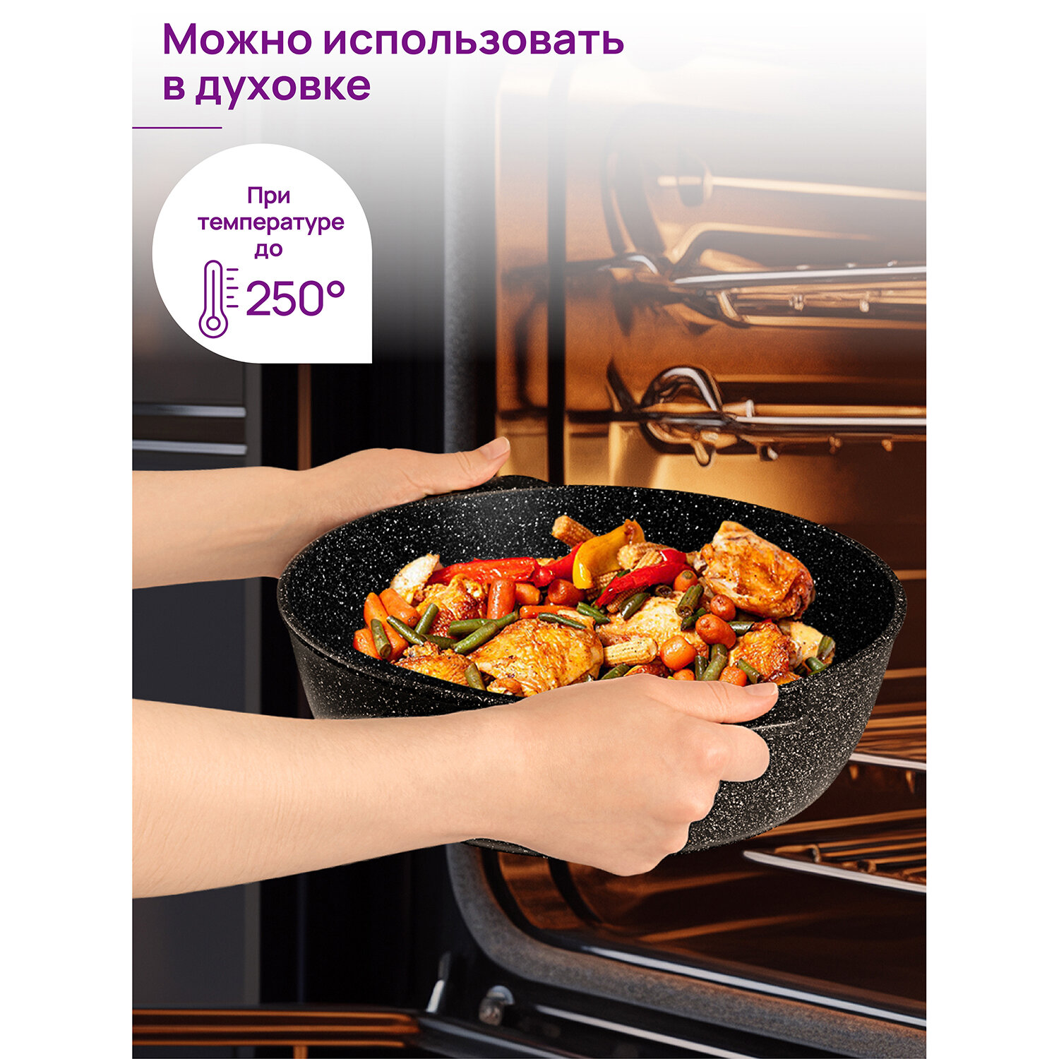 СохранитьСковорода ВОК 28 см 3 л гармония вкуса Черный мрамор с крышкой D28 интересное: