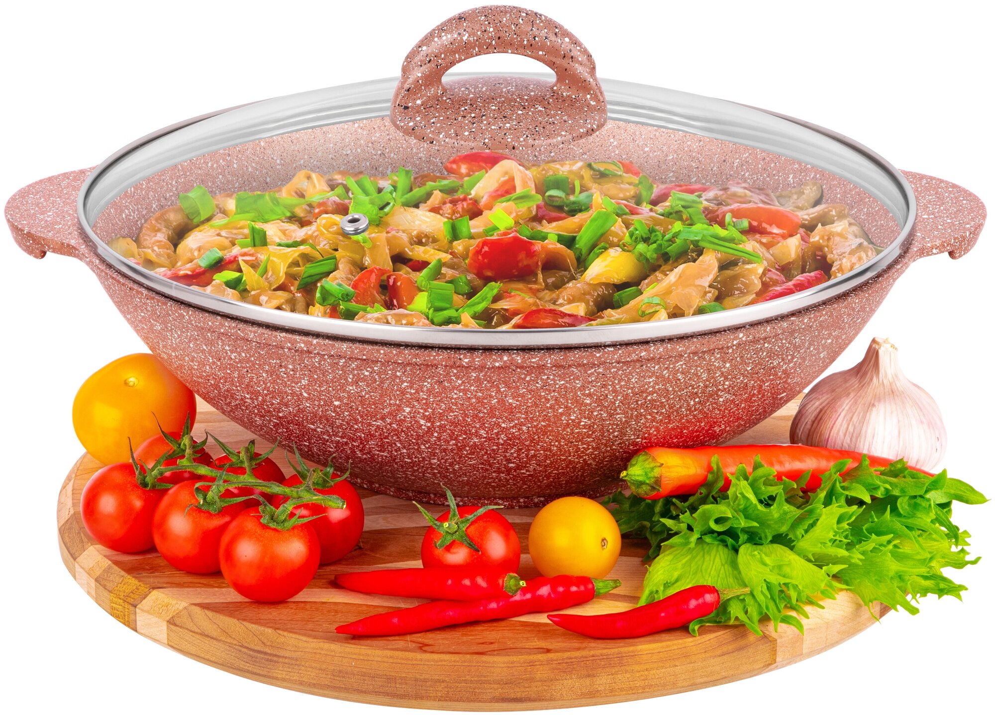 Сковорода ВОК 3 л 28 см Elan Gallery гармония вкуса Коричневый опал с крышкой D28