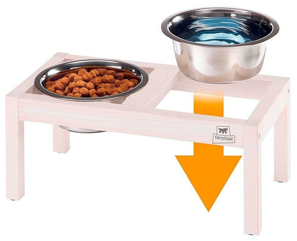 Купить Деревянная подставка с металлическими мисками для кошек и собак Ferplast DESCO WOOD 1,7 л(2х0,85л) 36х18,2х16 см