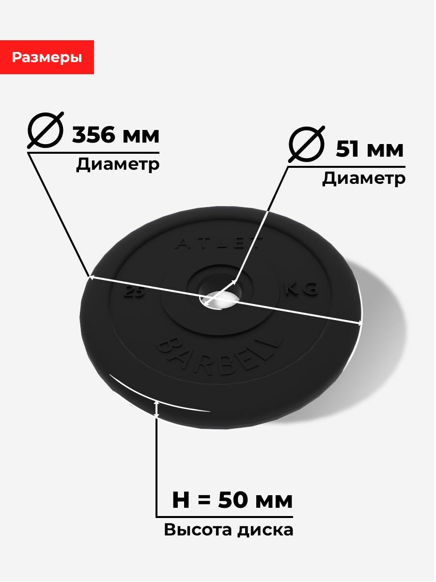 Диск для штанги MB Barbell MB-AtletB51 25 кг черный, 51 мм, 25 кг Atlet