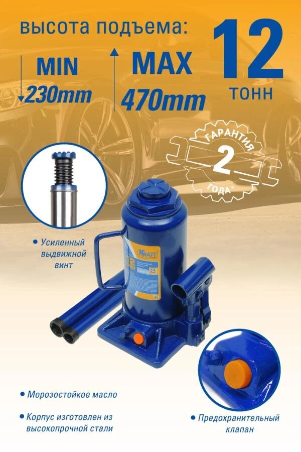 KRAFT KT800019 домкрат бутылочный 12 т. ( min 230mm-max 470mm)