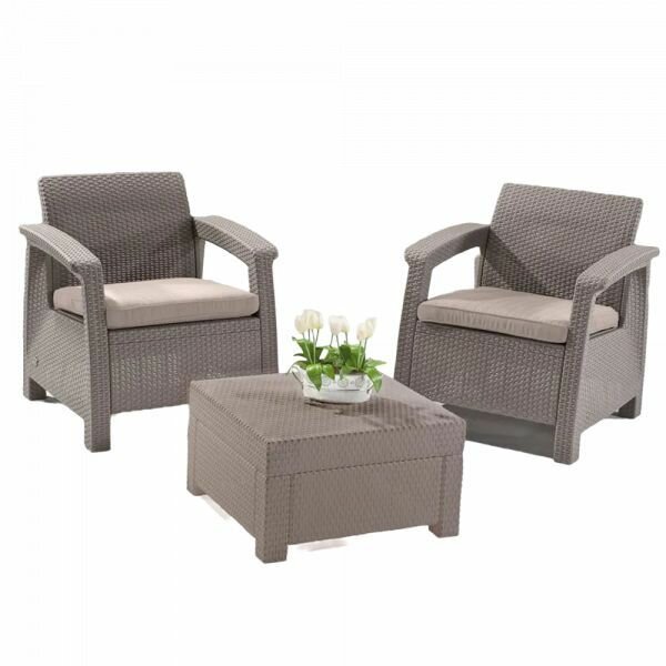 Комплект садовой мебели Keter Corfu Weekend (стол, 2 кресла), капучино