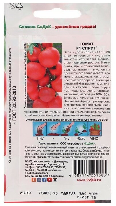 Семена Томат "Спрут" F1, 0,03г интересное: