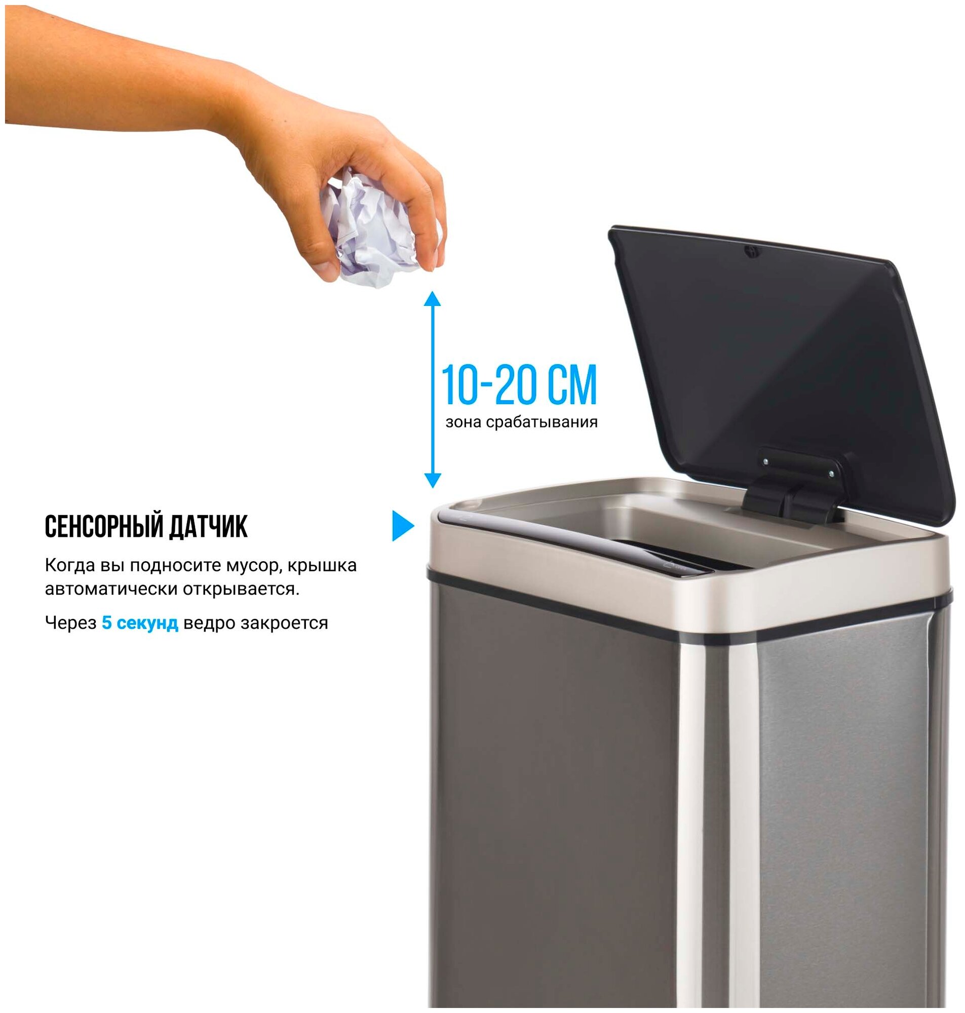 | Плюсы: | Современное ведро, умное и отзывчиво открывает крышку. |