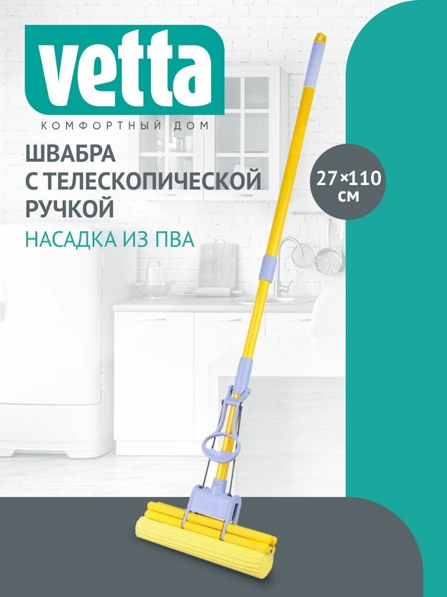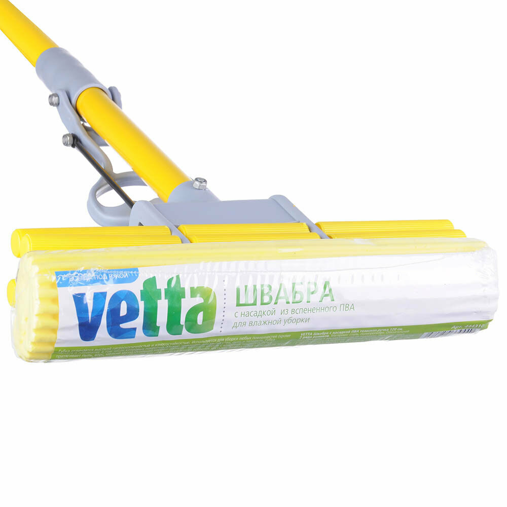 Швабра для мытья полов с отжимом Vetta 120 см, с насадкой ПВА, телескопическая ручка, 2 ряд роликов